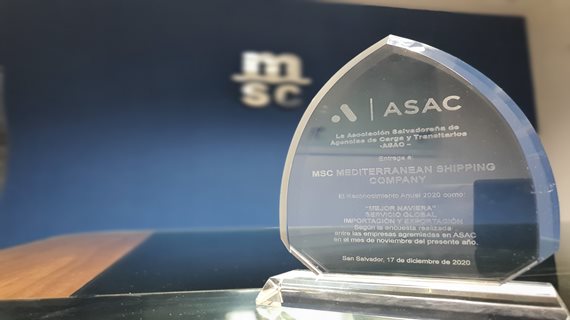 The award is the results of a survey that ASAC carried out among its members, with MSC being one of ten carriers that were voted upon for this category. This is not the first time MSC El Salvador is awarded by the Association. In 2018, the agency was named “Best Ocean Carrier” and came in first place for the “Best Export Services” prize and in third place for “Best Import Services”. In 2019, ASAC expanded the Ocean Carrier category to award companies for import and export services under one single award, with MSC ranking in second place for “Best Global Ocean Carrier”.