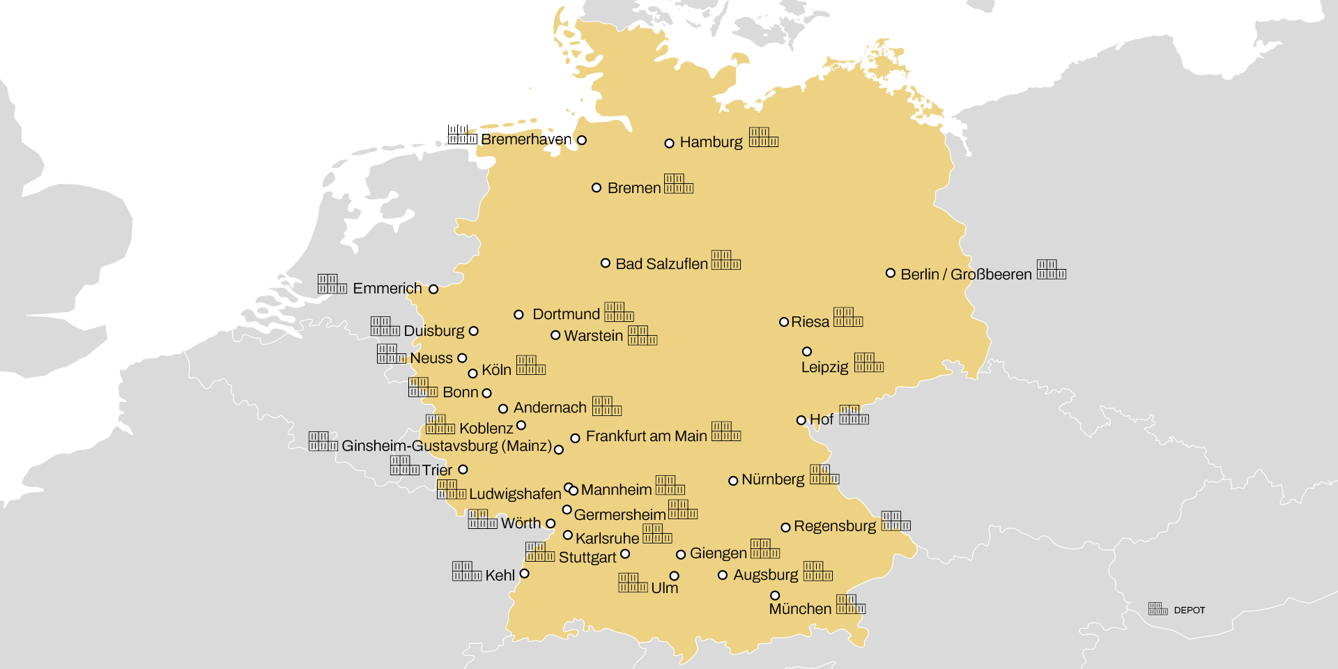 Die günstige Lage unserer Inland-Terminals in Deutschland bietet Ihnen die Flexibilität, Container in Ihrer Region abzuholen und zuzustellen.