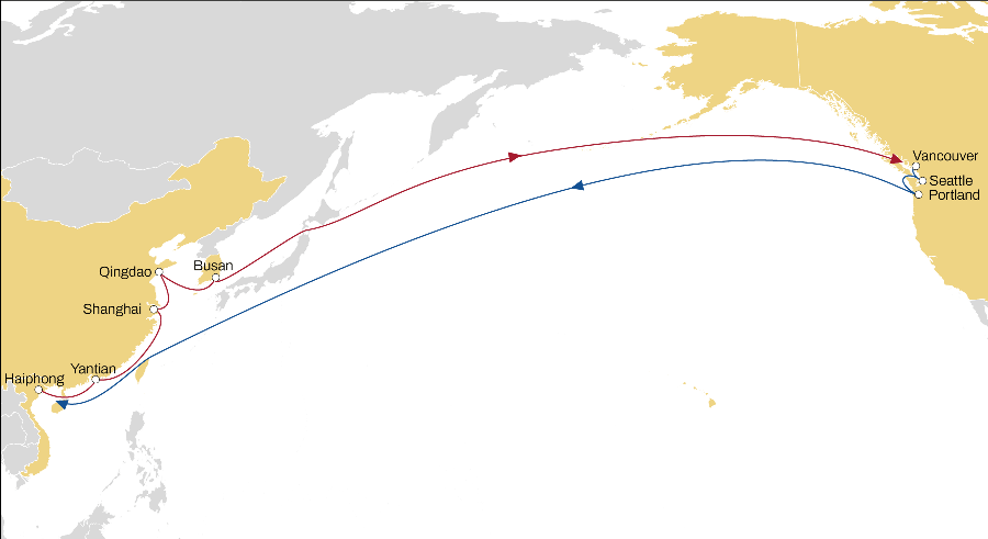 Haiphong – Yantian – Shanghai – Qingdao – Busan – Vancouver – Seattle – Portland – Haiphong
