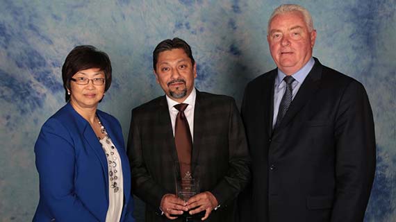 From left to right: Grace Liang from OOCL (on behalf of CIFFA), Mr. Deb Ghosh, Regional Sales Manager - Toronto, accepting the award on behalf of MSC and Ian Kennedy from ITN Logistics (on behalf of CIFFA).