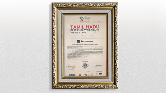 MSC Technology India is proud to have received the Tamil Nadu Best Employer Brand Award 2018, a prestigious recognition of its work in developing employees, including creating leaders and talent management.