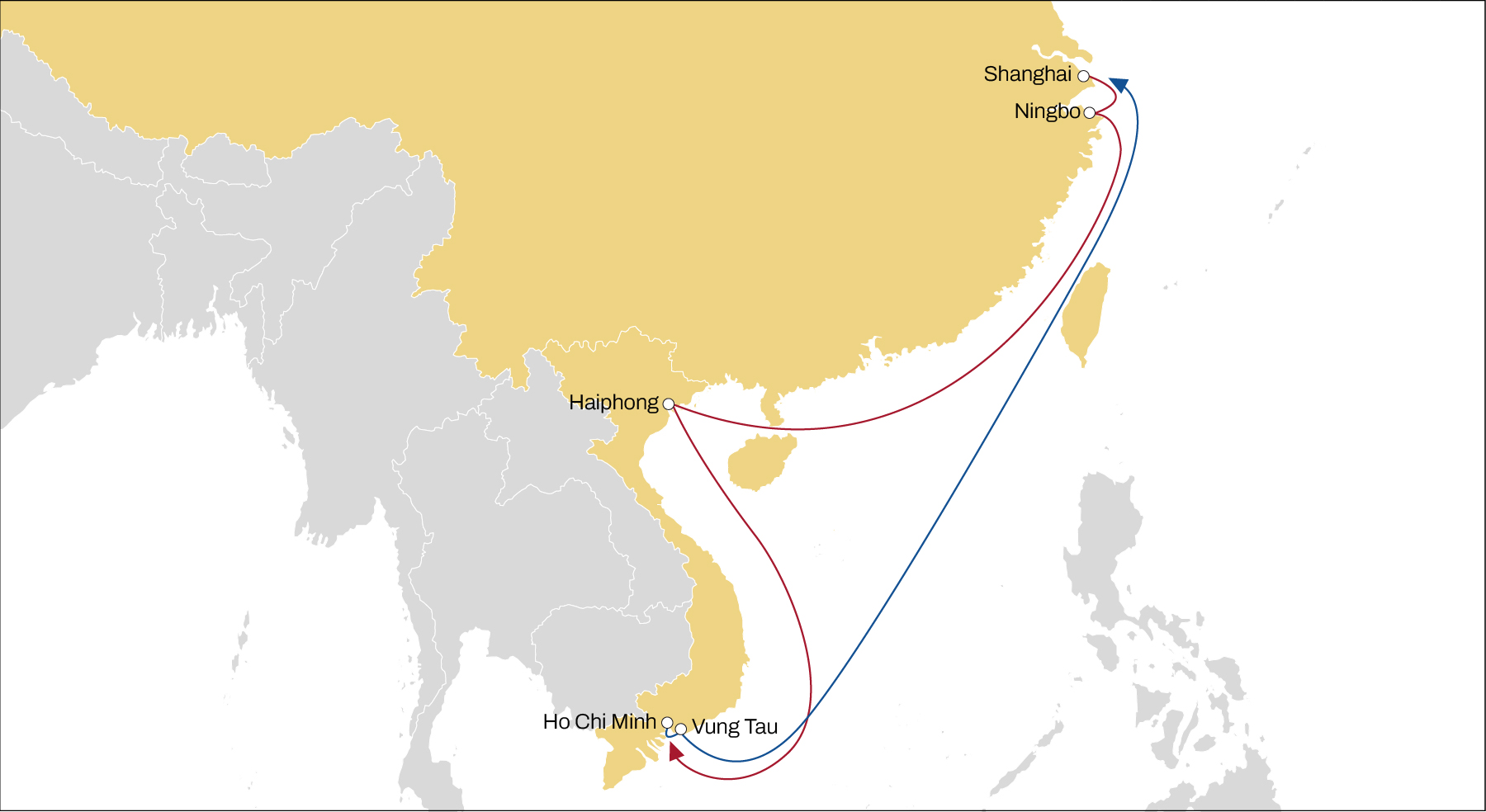 Shanghai – Ningbo – Haiphong – Ho Chi Minh City – Vung Tau – Shanghai