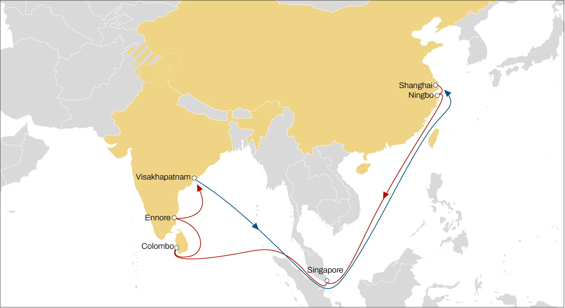 Shanghai – Ningbo – Singapore – Colombo – Ennore – Visakhapatnam – Shanghai