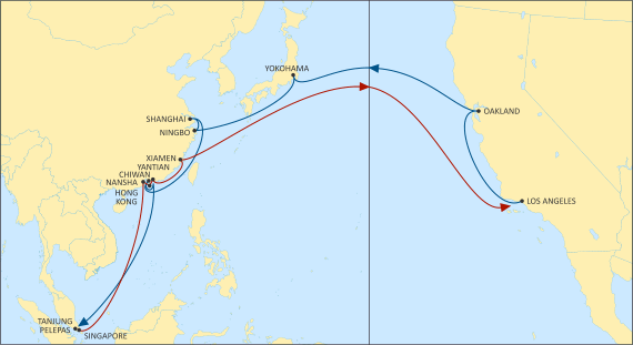 | Port Rotation: Singapore, Nansha, Hong Kong, Yantian, Xiamen, Los Angeles, Oakland, Yokohama, Ningbo,Shanghai, Chiwan, Yantian, Tanjung Pelepas |